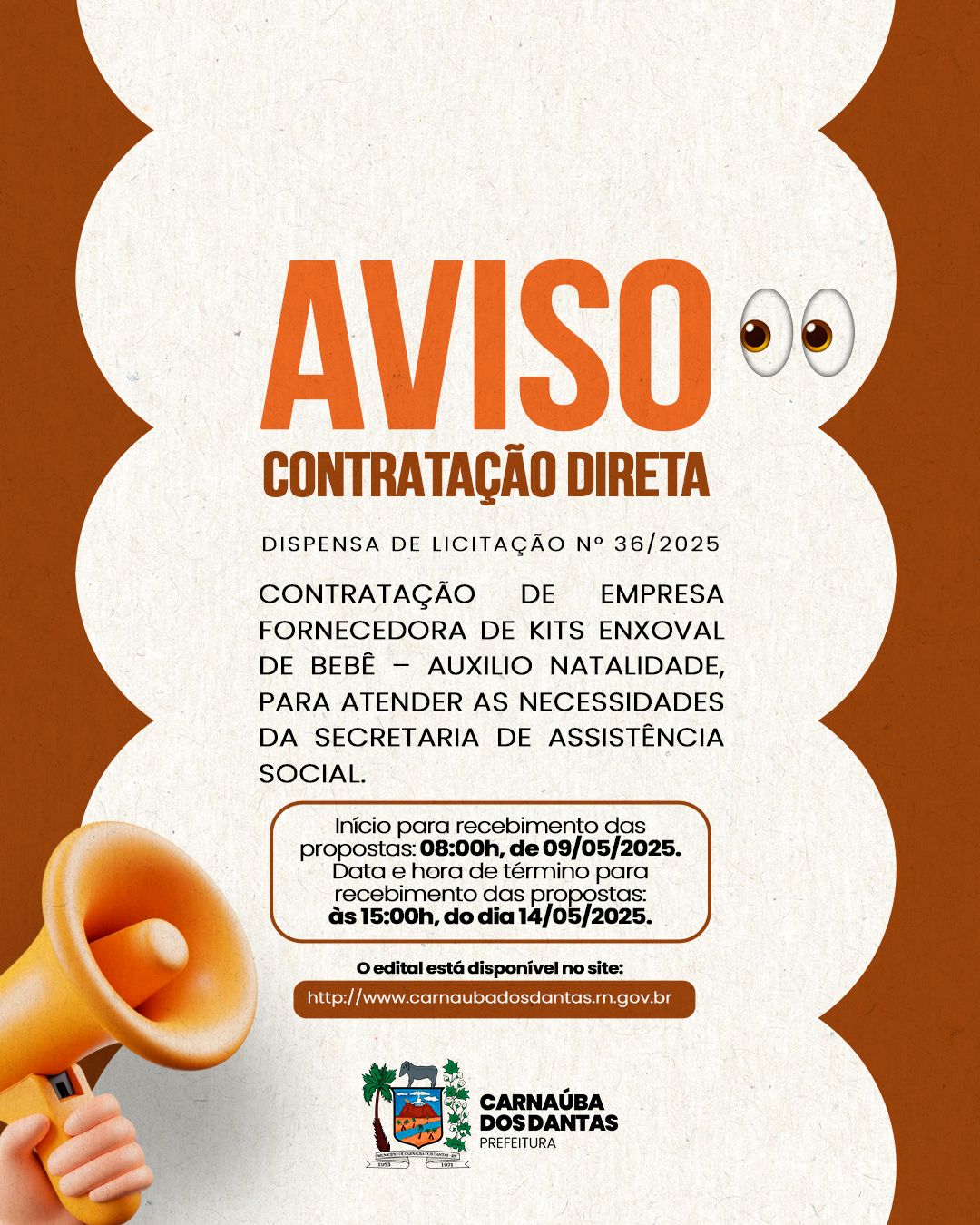 O edital está disponível no site: www.carnaubadosdantas.rn.gov.br