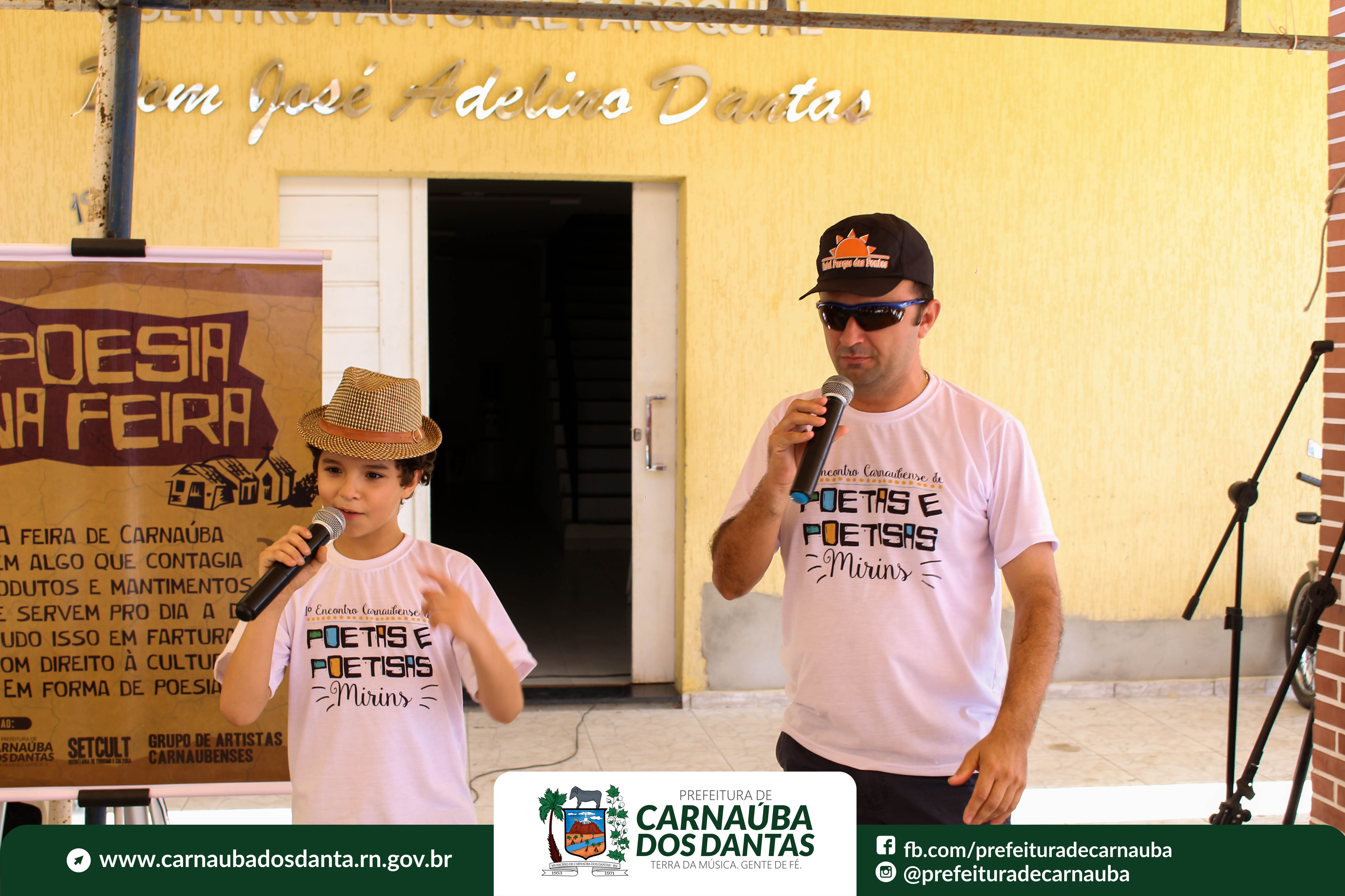 Na manhã de domingo (13/05) aconteceu mais uma edição do projeto Poesia na Feira. A ação é realizada pela Prefeitura Municipal através da Secretaria de Turismo e Cultura e apoiada pelo Grupo de Artistas Carnaubenses. Essa atividade vem sendo desenvolvida desde o início do ano e tem como objetivo proporcionar o acesso à cultura, o intercambio cultural e descoberta de novos talentos da poesia local.