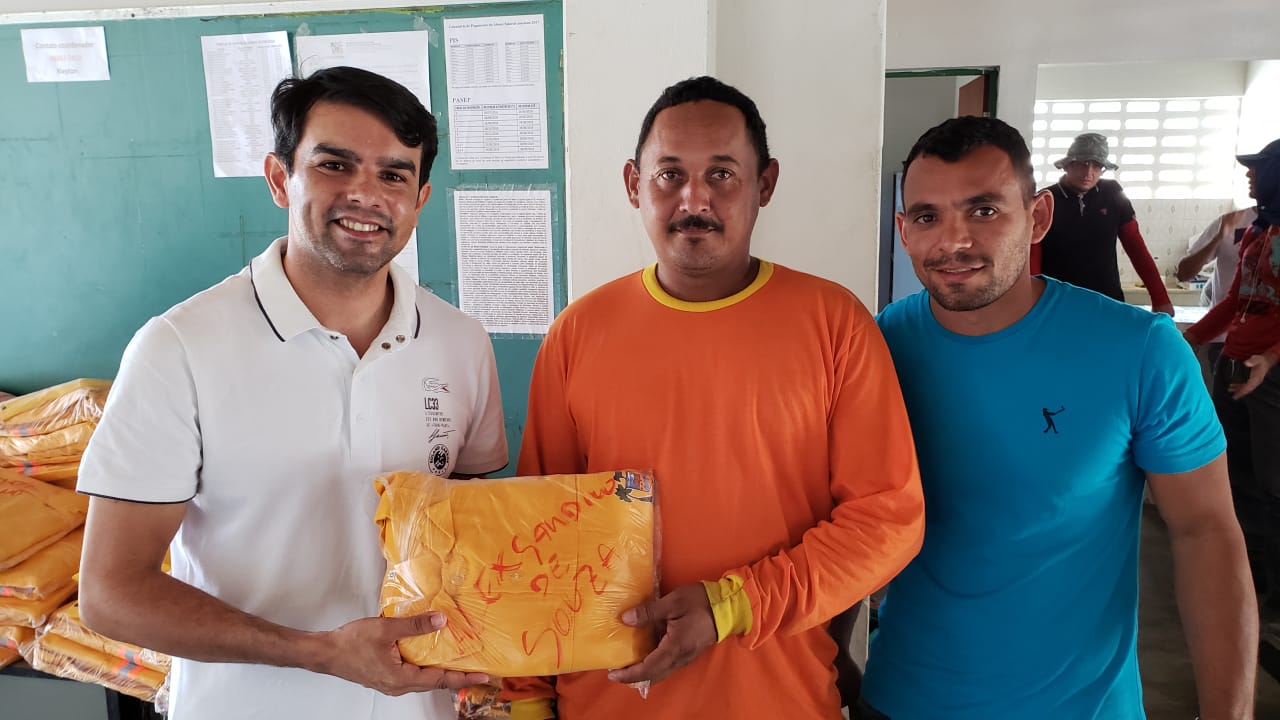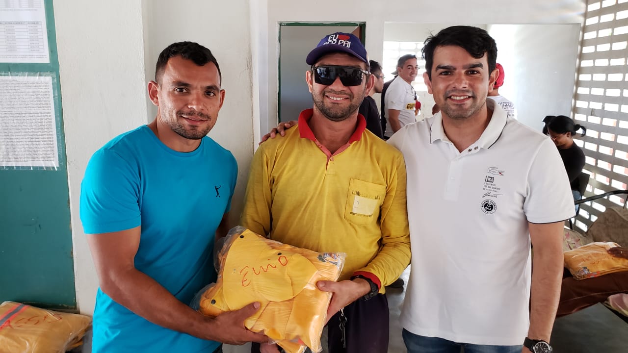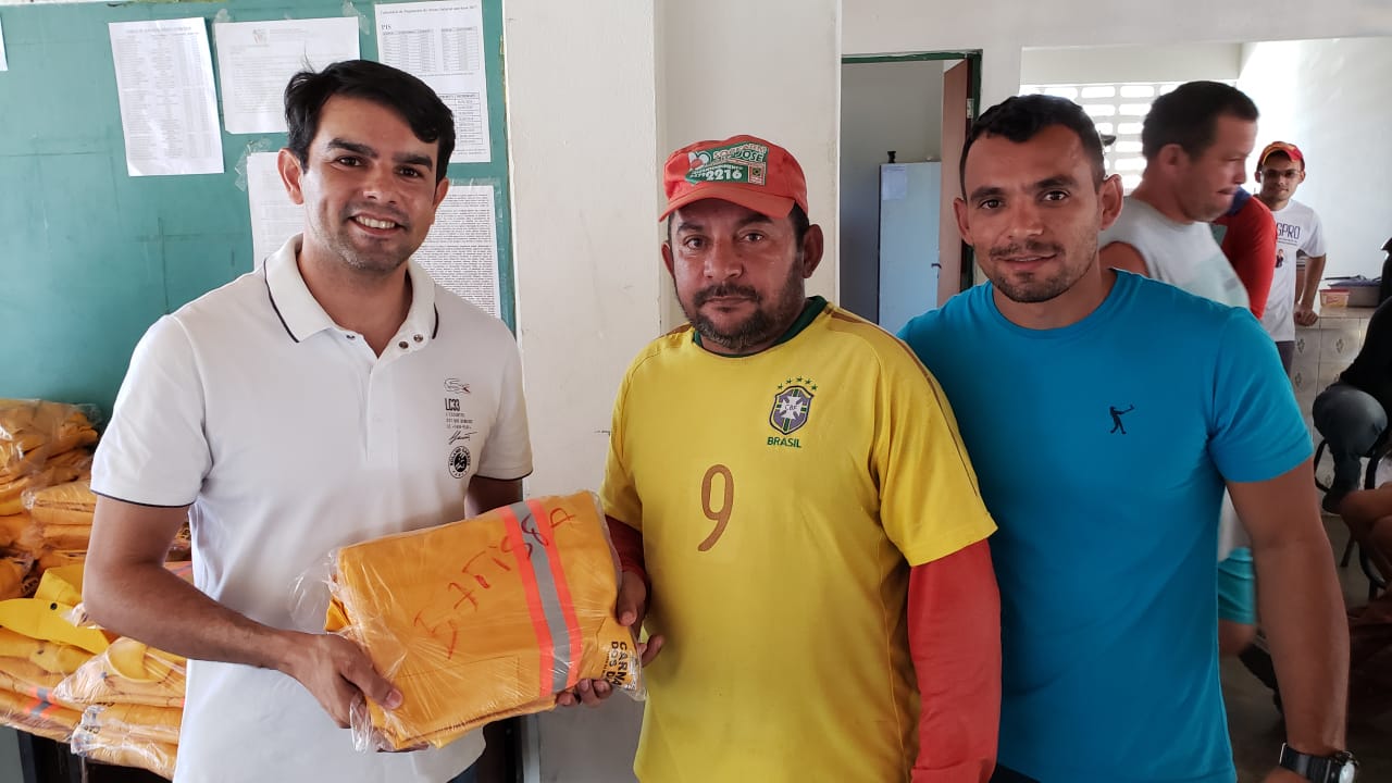 Na manhã desta terça-feira (07) o Prefeito Municipal Gilson Dantas, juntamente com o Secretário de Obras, Serviços Urbanos e Transportes Públicos, Laécio Júnior, o Coordenador de Obras, Kleyton Medeiros estiveram fazendo a entrega do fardamento aos funcionários da referida secretaria.